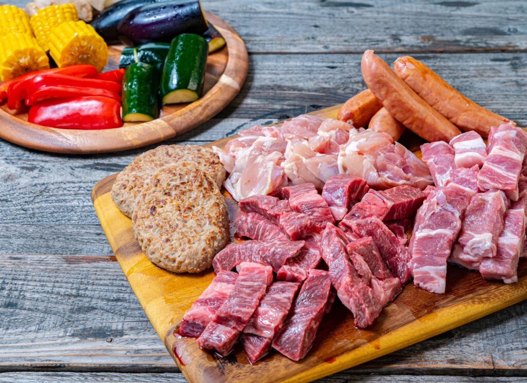 - 牛、豚、鳥、ソーセージ、ハンバーグ(1人あたり360g)
